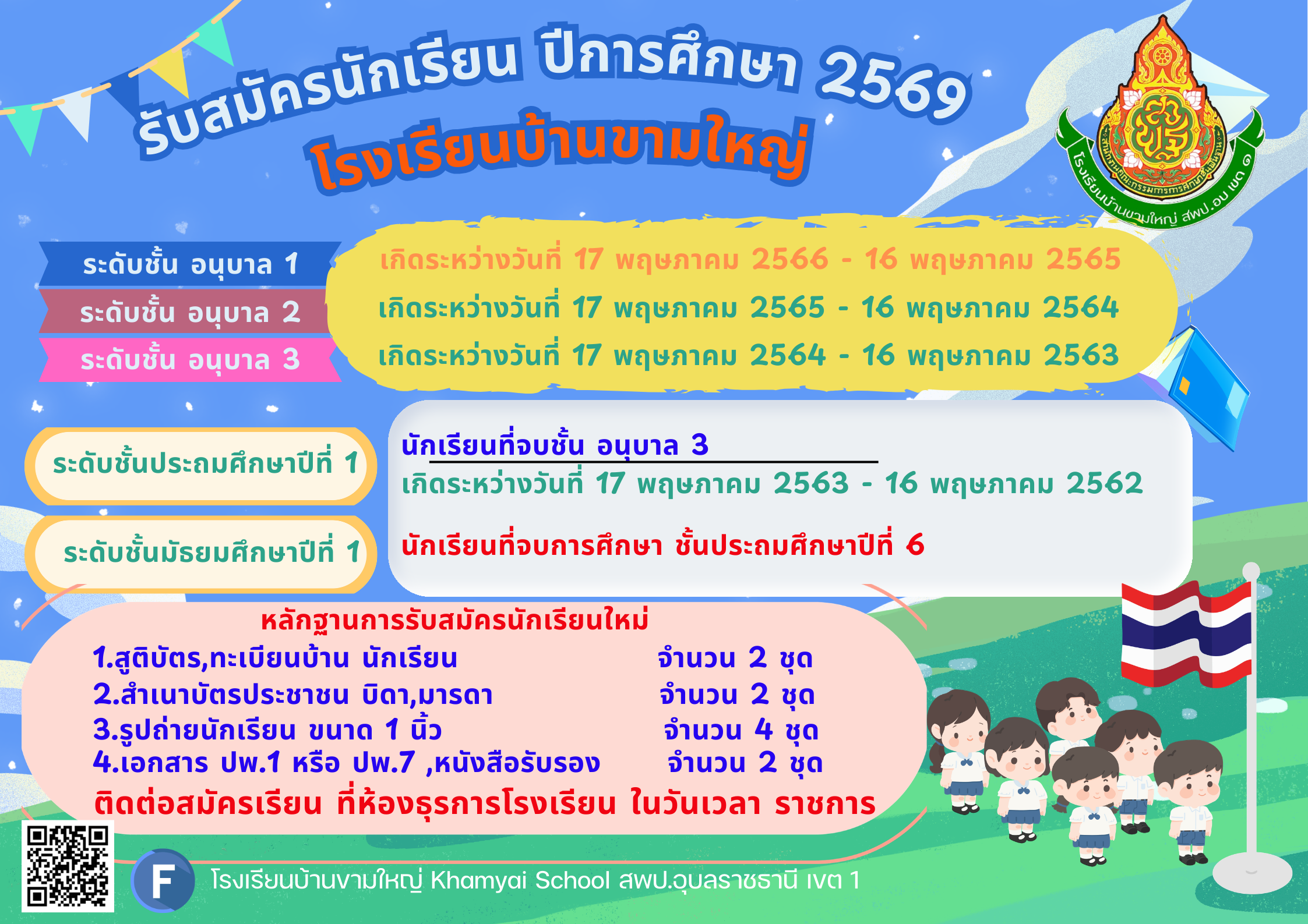ยินดีต้อนรับเข้าสู่เว็บไซต์ โรงเรียนบ้านขามใหญ่ สำนักงานเขตพื้นที่การศึกษาประถมศึกษาอุบลราชธานี เขต 1